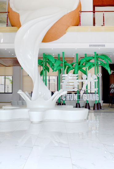 椰子文化館中主要設有海南物產文化、椰子科普知識、海南奇椰趣聞、春光品牌簡介、海南工藝品展示等幾個部分,客人們能在這個區域了解到海南特色的風俗文化以及椰子的相關知識。另外,椰子王國是春光食品又一重要生產基地,這里主要生產椰子風味餅干、糖果與菠蘿蜜干等產品,其生產線均由丹麥、瑞典、意大利、荷蘭等歐洲國家引進,并透過透明的玻璃向客人全方位展示生產實景。