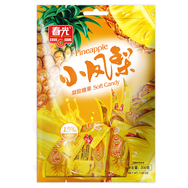 葡萄糖漿、白砂糖、鳳梨原漿(15%)、食品添加劑(卡拉膠、檸檬酸、檸檬酸鈉、淀粉、DL-蘋果酸、檸檬黃)、食用香精。