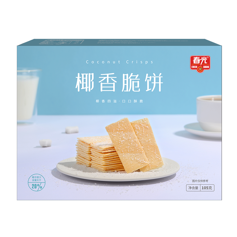 小麥粉、白砂糖、食用油脂制品、椰子原汁、雞蛋、椰蓉、淀粉、黃油、全脂乳粉、可可粉、碳酸氫鈉、食用香精、碳酸氫銨、復配膨松劑(碳酸氫鈉、焦磷酸二氫二鈉、葡萄糖酸-δ-內(nèi)酯、磷酸二氫鈣、檸檬酸、磷酸三鈣、玉米淀粉)。
