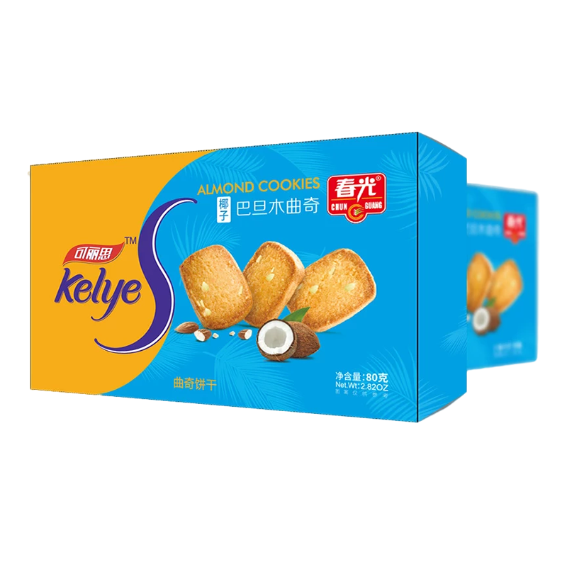 小麥粉、白砂糖、食用油脂制品、椰子原汁、巴旦木仁、黃油、全脂乳粉、雞蛋、椰蓉、淀粉、植物油、碳酸氫銨、碳酸氫鈉。