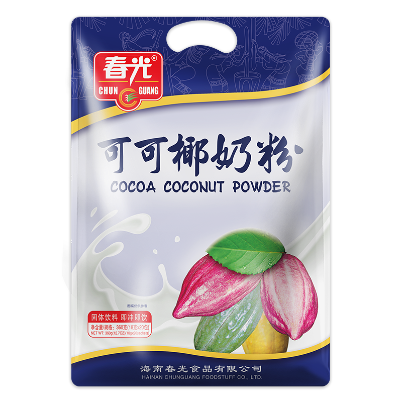 白砂糖、植脂末【植物油、玉米糖漿、食品添加劑(酪蛋白酸鈉、單,雙甘油脂肪酸酯、硬脂酰乳酸鈉、磷酸氫二鉀、檸檬酸鈉、二氧化硅)】、椰子汁、可可粉、麥芽糊精、食品添加劑(β-環(huán)狀糊精、酪蛋白酸鈉、大豆磷脂、單,雙甘油脂肪酸酯、卡拉膠、羧甲基纖維素鈉)。