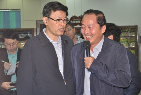 11月28日上午,冒著寒綿冬雨,踩著泥濘大地,省長(zhǎng)蔣定之帶領(lǐng)參加全省品牌農(nóng)業(yè)發(fā)展推進(jìn)大會(huì)的代表考察了我司文昌廠區(qū),公司黃春光董事長(zhǎng)等相關(guān)領(lǐng)導(dǎo)陪同介紹。